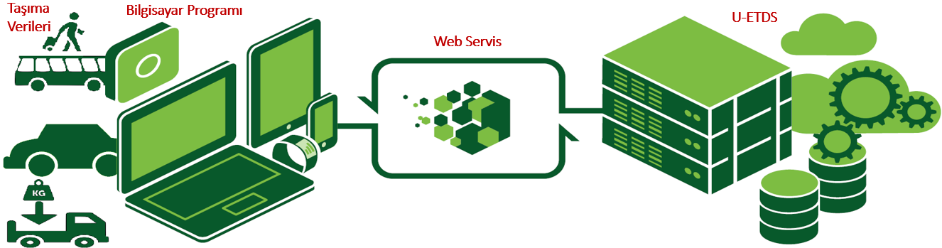 Sisteme veri göndermenin ikinci yolu ise web servis denilen yöntemdir. Bu yöntem için işletmelerin kendi taşıma faaliyetlerini takip ettikleri bir yazılım bulunması gerekir. Bakanlık tarafından yayımlanan kurum entegrasyon dökümanı aracılığıyla işletmelerin kendi yazılımlarını Bakanlığın sistemine entegre etmeleri sağlanır. Bu entegrasyon için U-ETDS IP Tanılama İşlemleri üzerinden web servis yetkilendirmesi yapılması gerekmektedir.
